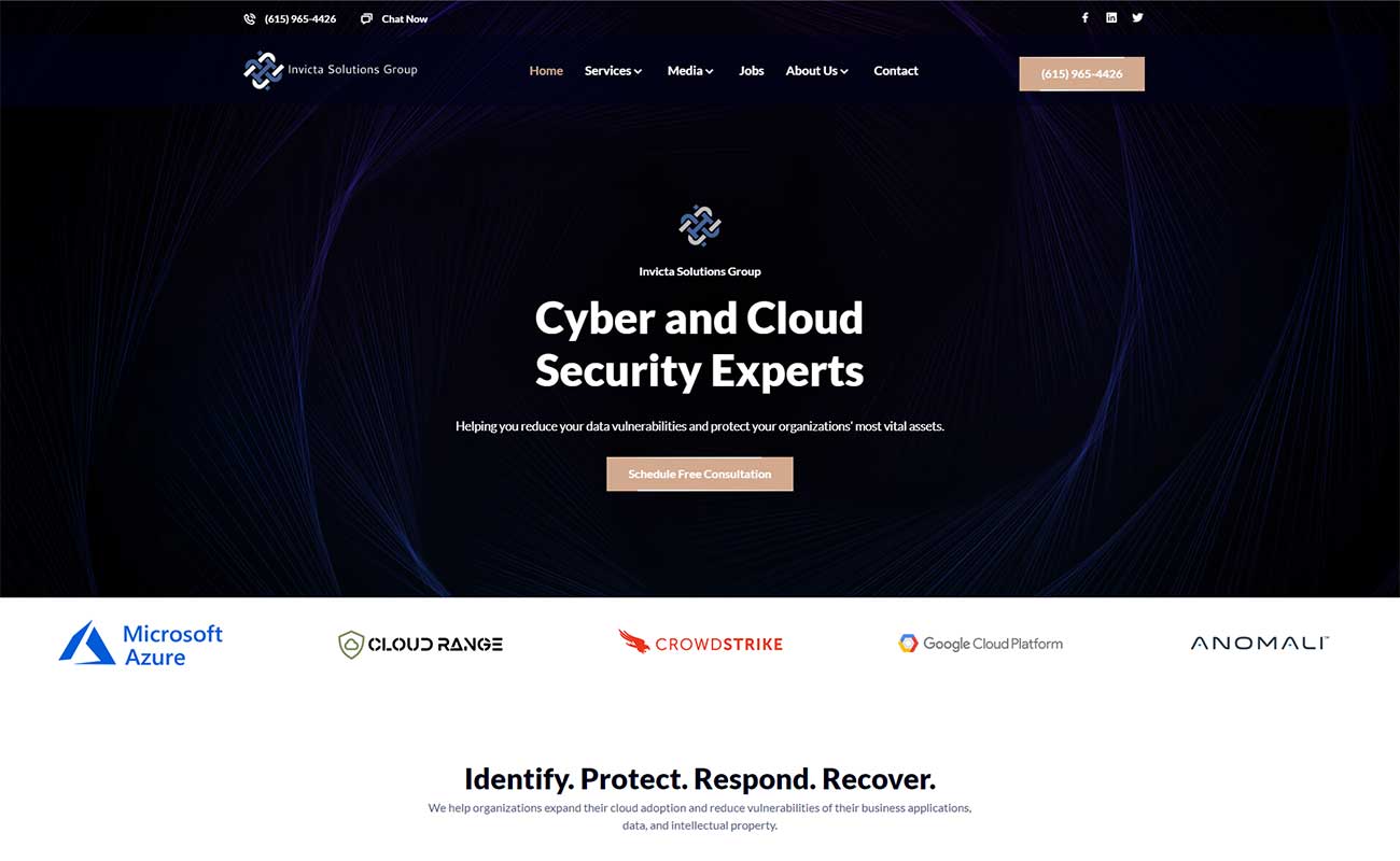 Website screenshot of the services category page for Invicta Solutions Group